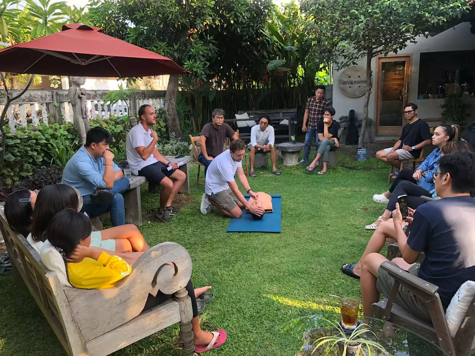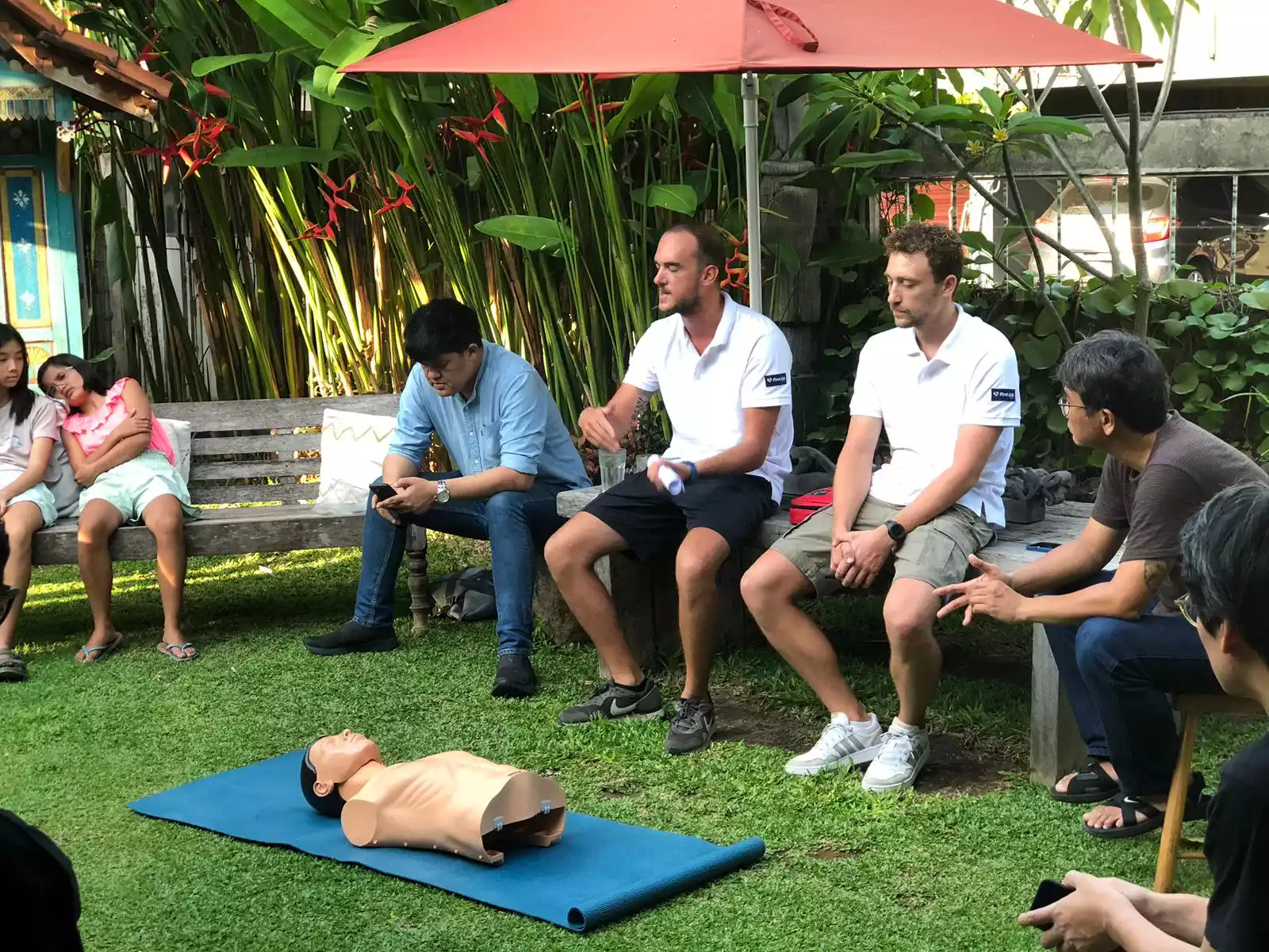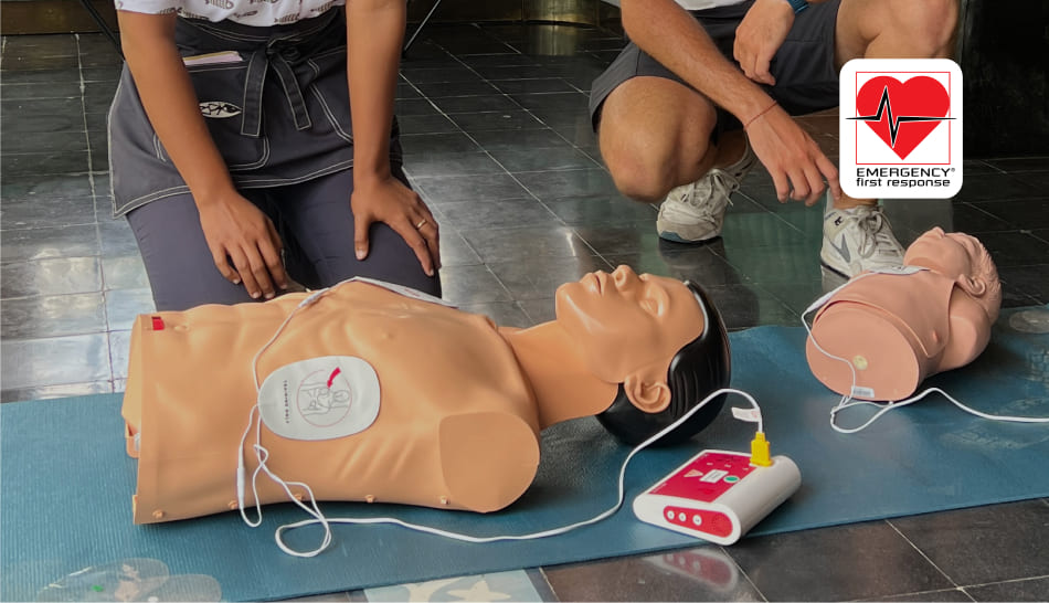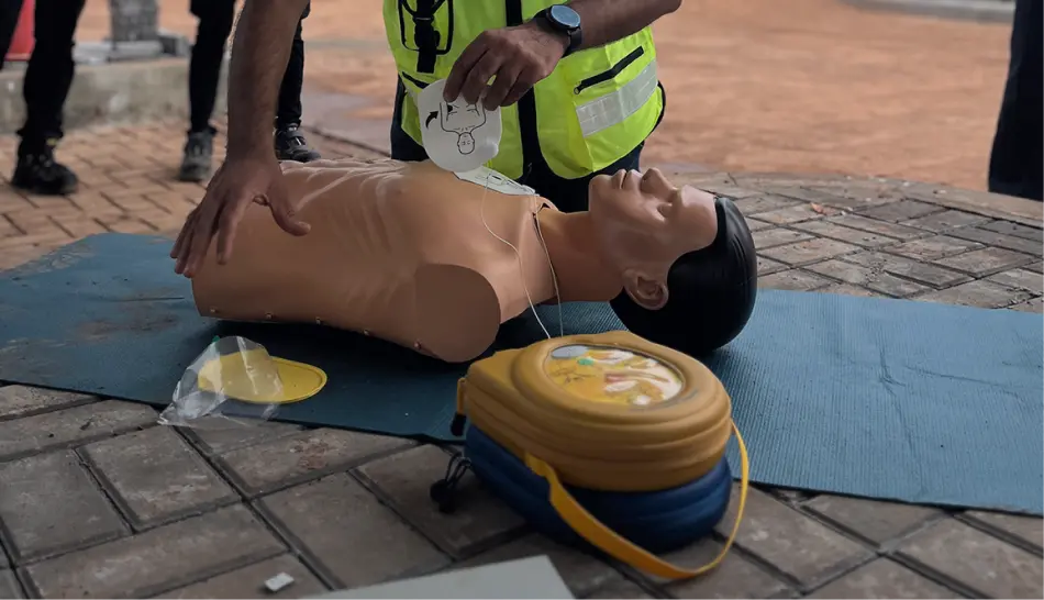 We use professional first aid equipment like AED, first aid bags, CPR mannequin...